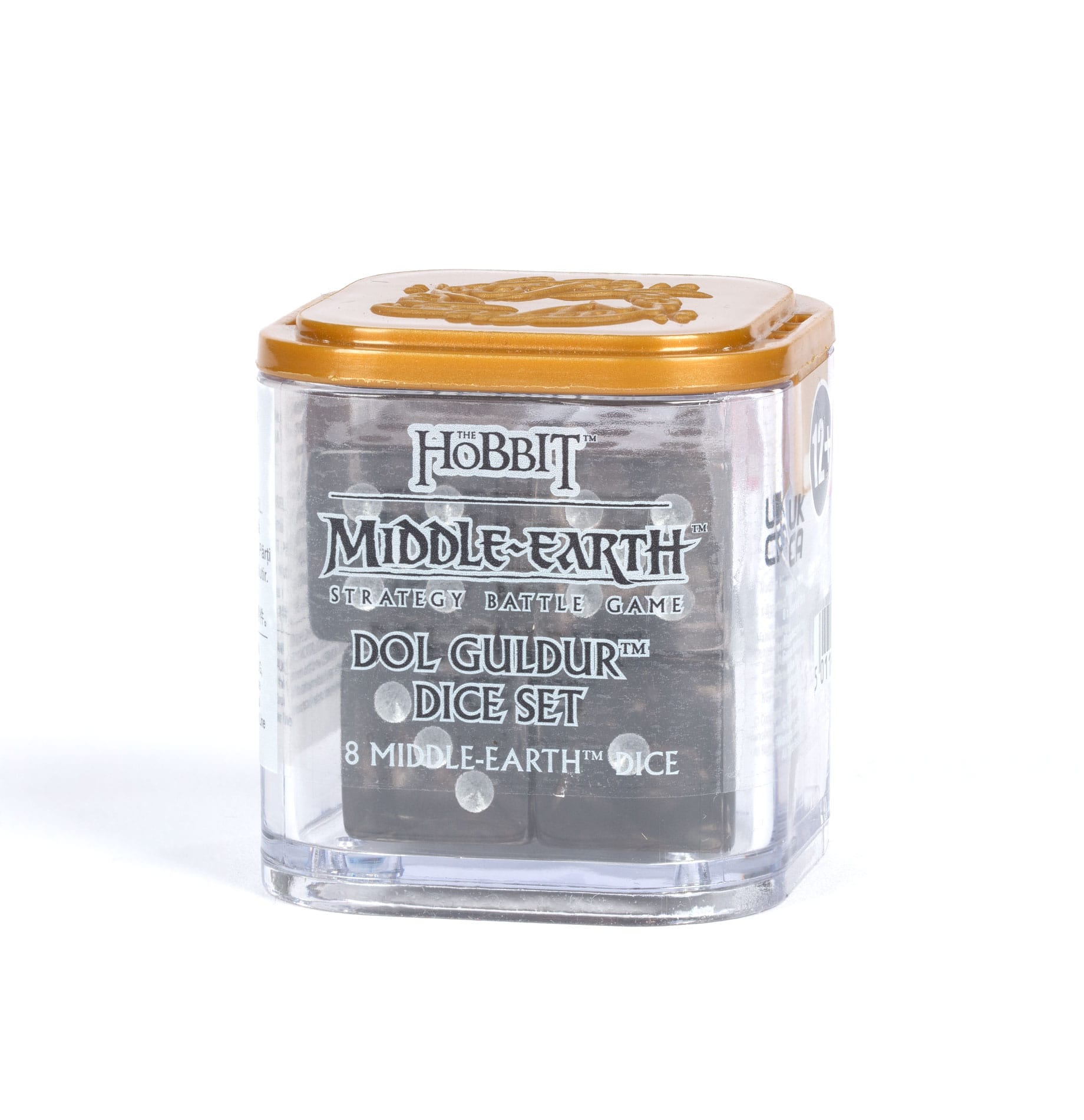 The perfect accessory for your games of Middle-earth Strategy Battle Game, this set of 8 dice is themed around Dol Guldur. Translucent with black, smokey swirls, and with silver pips, each die also features Sauron’s armoured faceplate on the 6 facing.
