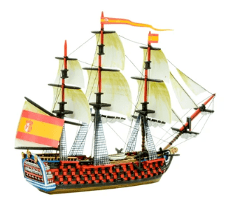 Spanish 1st Rates are especially characterful when utilising the national special rules in the game. Many Spanish vessels were extremely heavily armed, and thus can take the ’Over Gunned’ upgrade for no additional cost. This bonus does not come without penalty however, as such bulky ships were difficult to sail. They must therefore pass a skill test when attempting to sail at a quicker rate of knots. Veteran crews are also not allowed to be taken on such ‘Over Gunned’ 1st Rates ships.