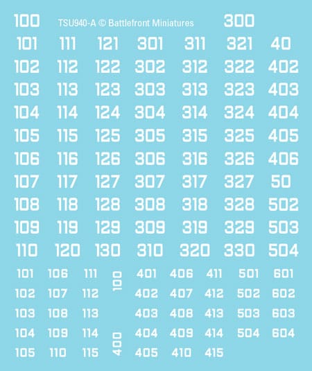 Contain two National Symbol coloured decal sheets that give you enough markings for four Hind Helicopters and over 100 vehicles and two generic vehicle number sheets to personalise your Companies and Platoons.