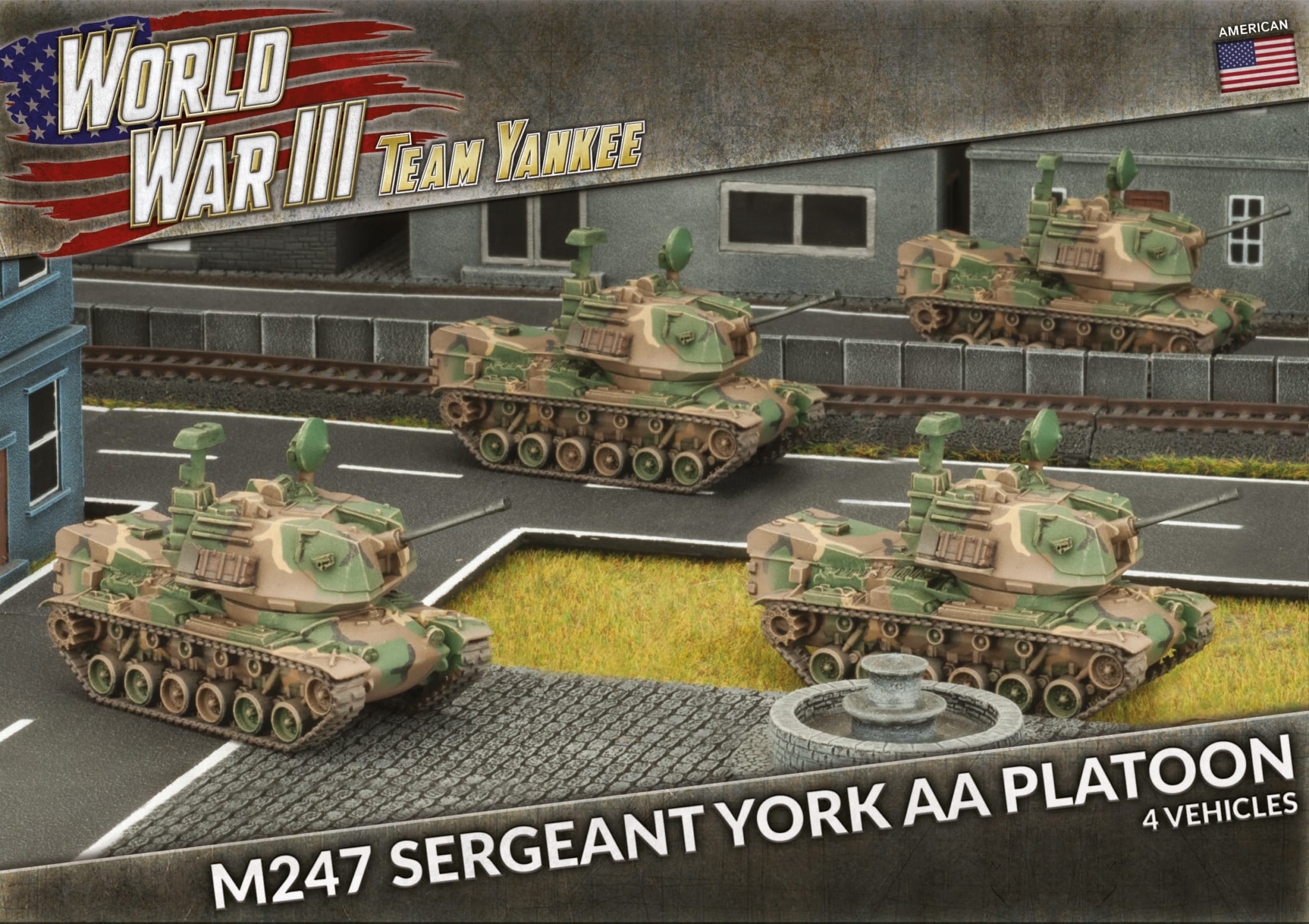 Includes four resin and metal M247 Sergeant York AA tanks and one unit card.