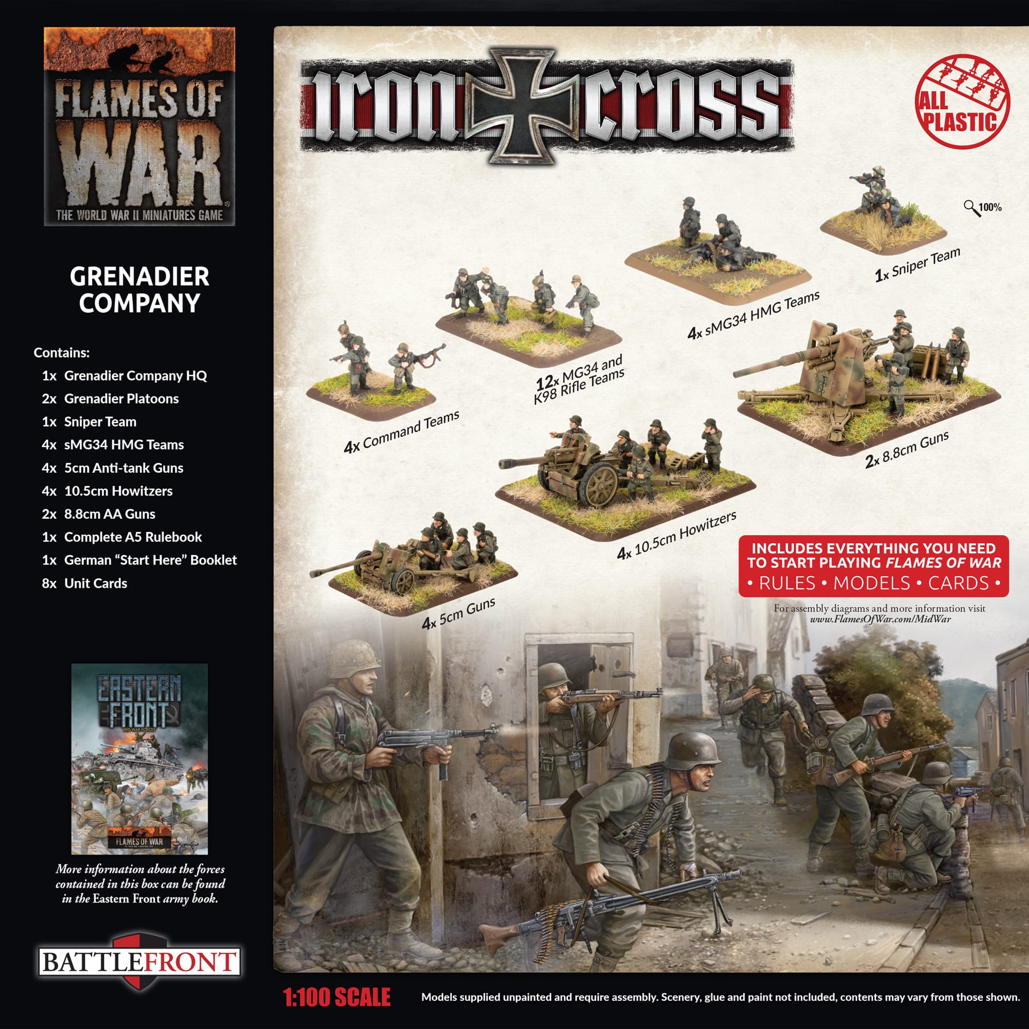 A Grenadierkompanie is the finest infantry force you can command. The troops are all experienced veterans and they are backed by the best weapons that the German army can provide, from StuG assault guns to the feared Tiger, your Grenadierkompanie will never be out-gunned or out-classed….