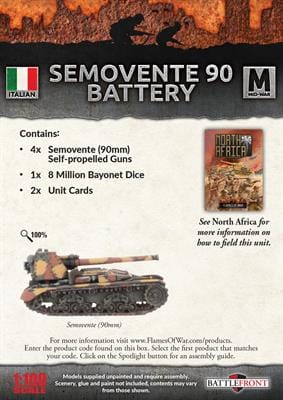 includes three Semovente (90mm) Self-propelled Guns, one 8 Million Bayonet dice and two Unit Cards.