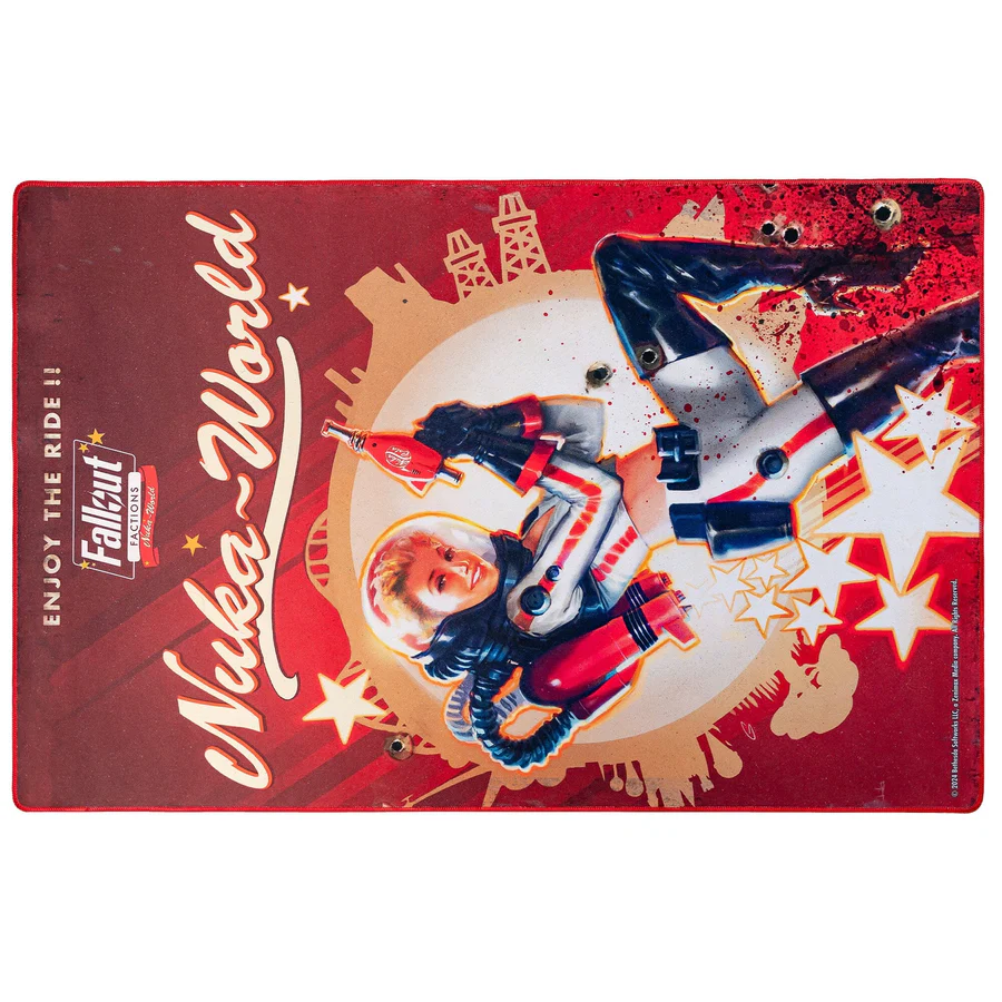 Take your Fallout: Factions game to the next level with the official Fallout: Factions Nuka-World Battle Map. This high quality, double-sided, neoprene mat hosts both the Dry Rock Gulch artwork seen in the Battle for Nuka-World Starter set, and the striking Nuka-Girl poster as well. Bordered with red stitching, the first Fallout: Factions Battle Map is a great addition for the player looking to upgrade their Factions experience.