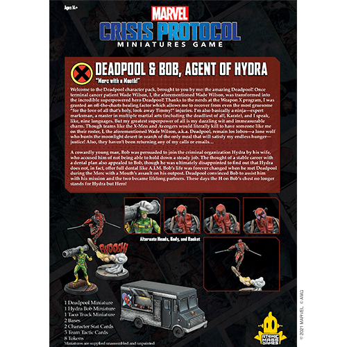 A cowardly young man, Bob was persuaded to join the criminal organization Hydra by his wife, who accused him of not being able to hold down a steady job. The thought of a stable career with a dental plan also appealed to Bob, though he was ultimately disappointed to find out that Hydra does not, in fact, offer full dental like A.I.M. Bob’s life was forever changed when he met Deadpool during the Merc with a Mouth’s assault on his outpost. Deadpool convinced Bob to assist him with his mission and the two became lifelong partners. These days the H on Bob’s chest no longer stands for Hydra but Hero!